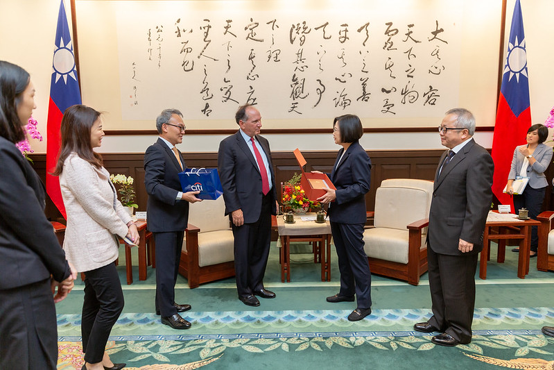 During a meeting with Citigroup Chair John Dugan on the afternoon of November 13, President Tsai Ing-wen stated that although there are many variables in the global economic and financial situations, global surveys still give Taiwan high rankings. Within the next few years, she said, Taiwan will gradually see trillions of NT dollars investment, some NT$100 billion in funds will also be repatriated to Taiwan, and business opportunities in financial services in Taiwan are unlimited, so we welcome further investments from Citigroup to take advantage of those opportunities.