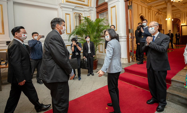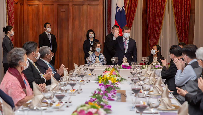 On the evening of March 30, President Tsai Ing-wen hosted a banquet for Palau President Surangel Whipps Jr. and First Lady Valerie Whipps at the Taipei Guest House, where she extended a warm welcome to the members of the Palauan delegation visiting Taiwan.