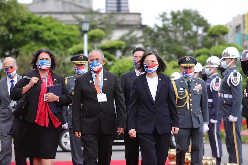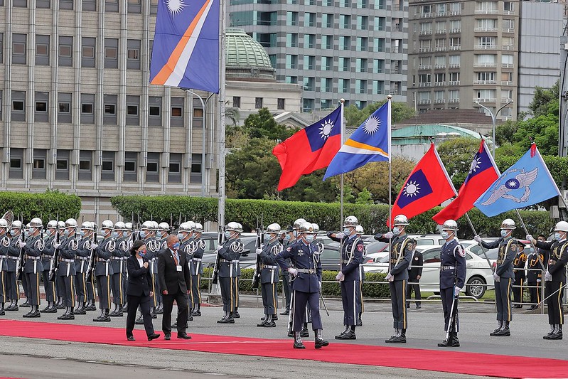 President Tsai Ing-wen officially welcomed President of the Marshall Islands David Kabua and First Lady Ginger Kabua on the morning of March 22 with full military honors. In remarks, President Tsai emphasized that the Republic of China (Taiwan) and the Republic of the Marshall Islands have always supported each other in overcoming all manner of challenges and are continuing to deepen our bilateral cooperation, which has consistently yielded excellent results.