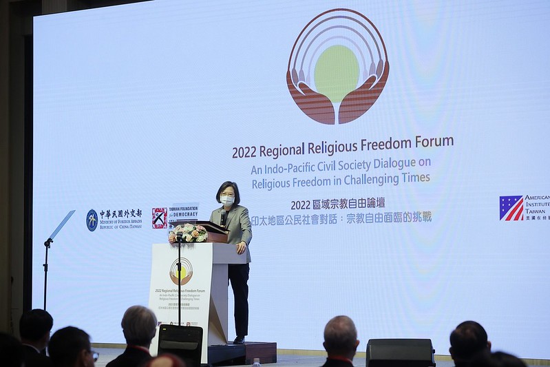 On the morning of August 30, President Tsai Ing-wen attended the opening ceremony of the 2022 Regional Religious Freedom Forum – An Indo-Pacific Civil Society Dialogue on Religious Freedom in Challenging Times. President Tsai said that religious freedom is a universal human right, and that Taiwan is committed to advancing religious freedom at home and abroad, as we aim to provide a model of inclusiveness for the Indo-Pacific region. She also stated that in the Indo-Pacific, NGOs and civil society have been key to defending and expanding religious freedom. The president expressed hope that through this forum, we may strengthen the values of mutual respect and tolerance, while advancing freedom and human rights in Taiwan and the Indo-Pacific.