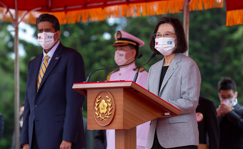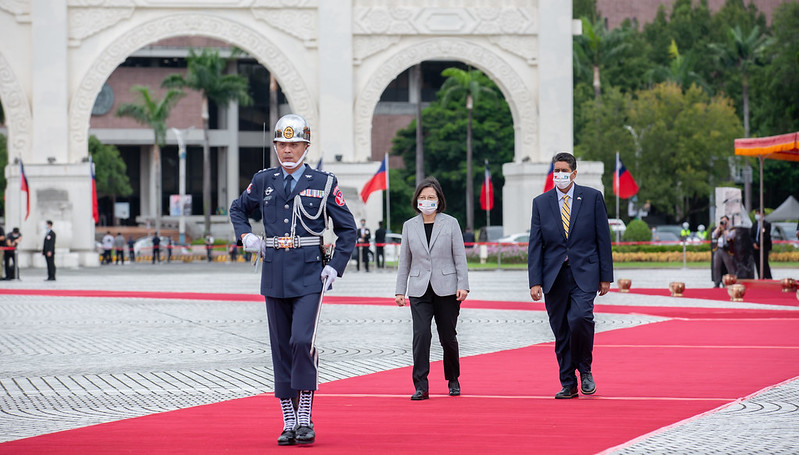 Today, I am delighted to receive our good friend President Whipps with military honors. In March last year, President Whipps was the first head of state among Taiwan's diplomatic allies to visit since the outbreak of the pandemic. Together, we launched the first travel bubble in Asia. This time, President Whipps has come on a state visit. On behalf of the people and government of the Republic of China (Taiwan), I extend my sincerest welcome to President Whipps.