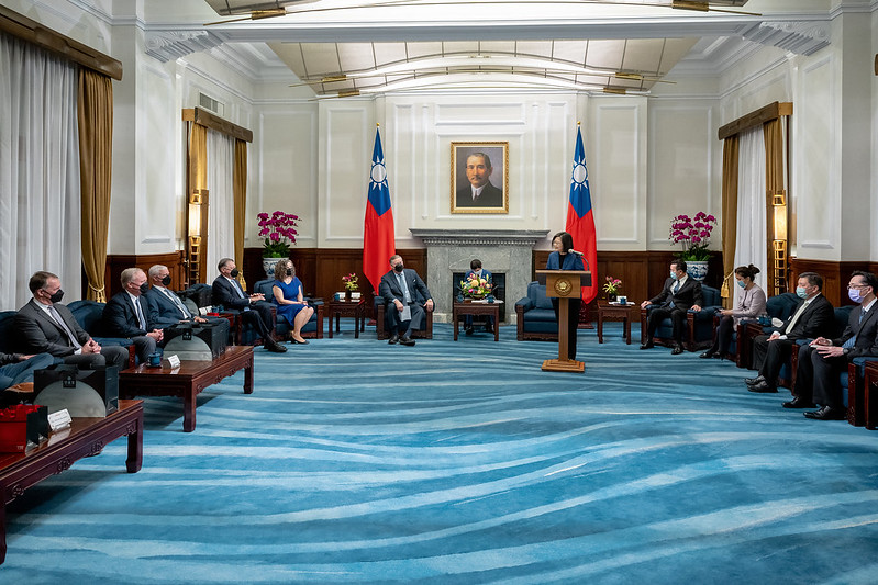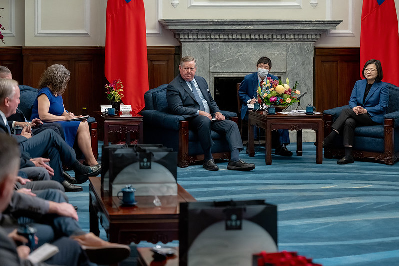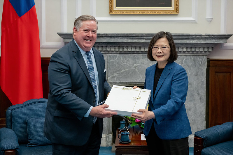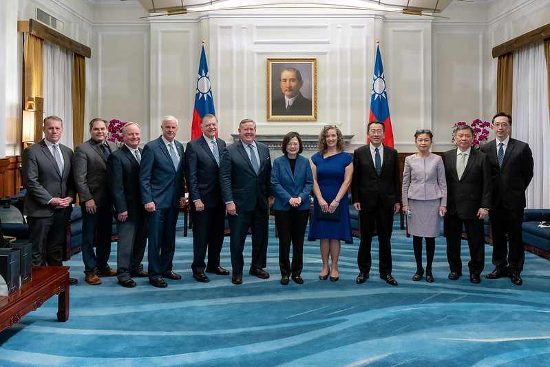 The delegation was accompanied to the Presidential Office by American Institute in Taiwan Taipei Office Director Sandra Oudkirk.
