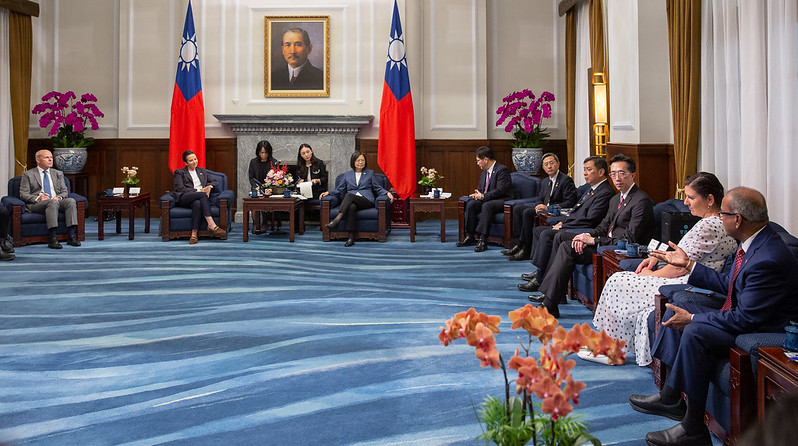 The delegation also included Members of Parliament Kyle Seeback, Marilene Gill, Marie-Helene Gaudreau, Chandra Arya, Michael Barrett, and Garnett Genuis and his wife Mrs. Rebecca Genuis. The delegation was accompanied to the Presidential Office by Canadian Trade Office in Taipei Executive Director Jim Nickel.