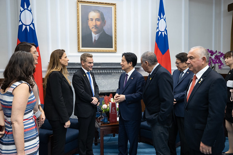 The delegation also included Members of the Knesset Michal Shir Segman, Debbie Biton, Shalom Danino, Eli Dallal, and Yael Ron Ben Moshe, and was accompanied to the Presidential Office by Representative of the Israel Economic and Cultural Office in Taipei Maya Yaron.